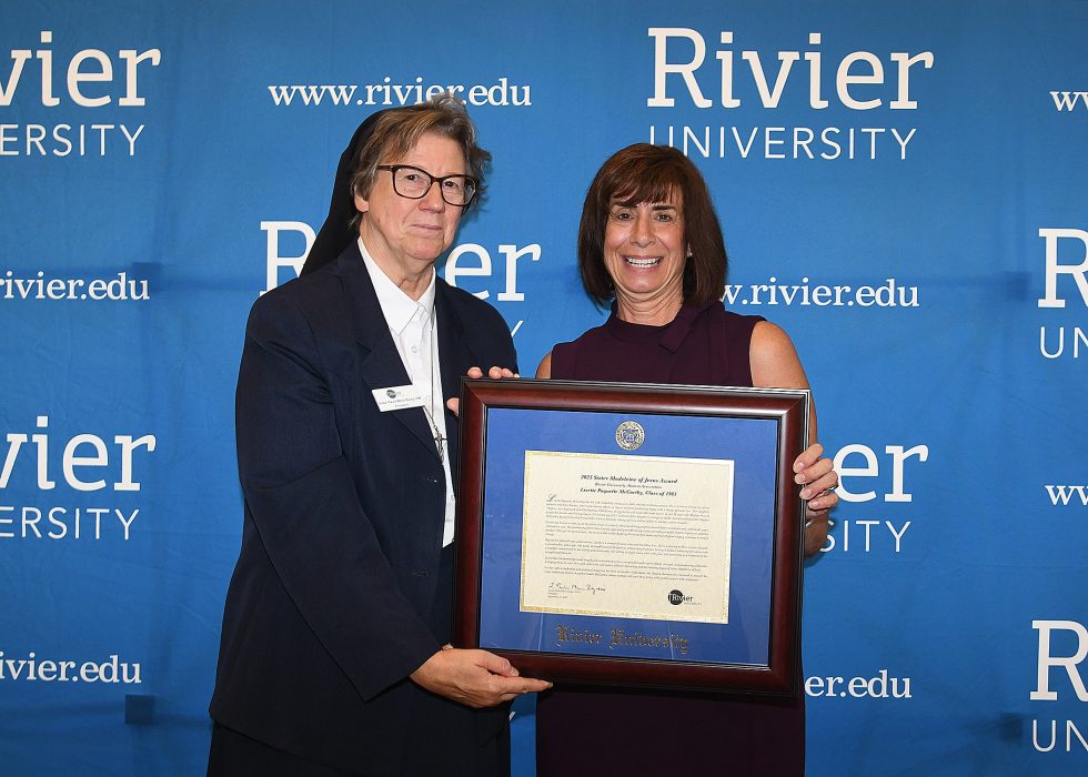 Rivier University’s Alumni Association presented the Sister Madeleine of Jesus Award to Lisette Paquette McCarthy ’83, a Nashua resident who has become a beacon of hope for cancer patients and their families through her tireless fundraising efforts to find a cure.